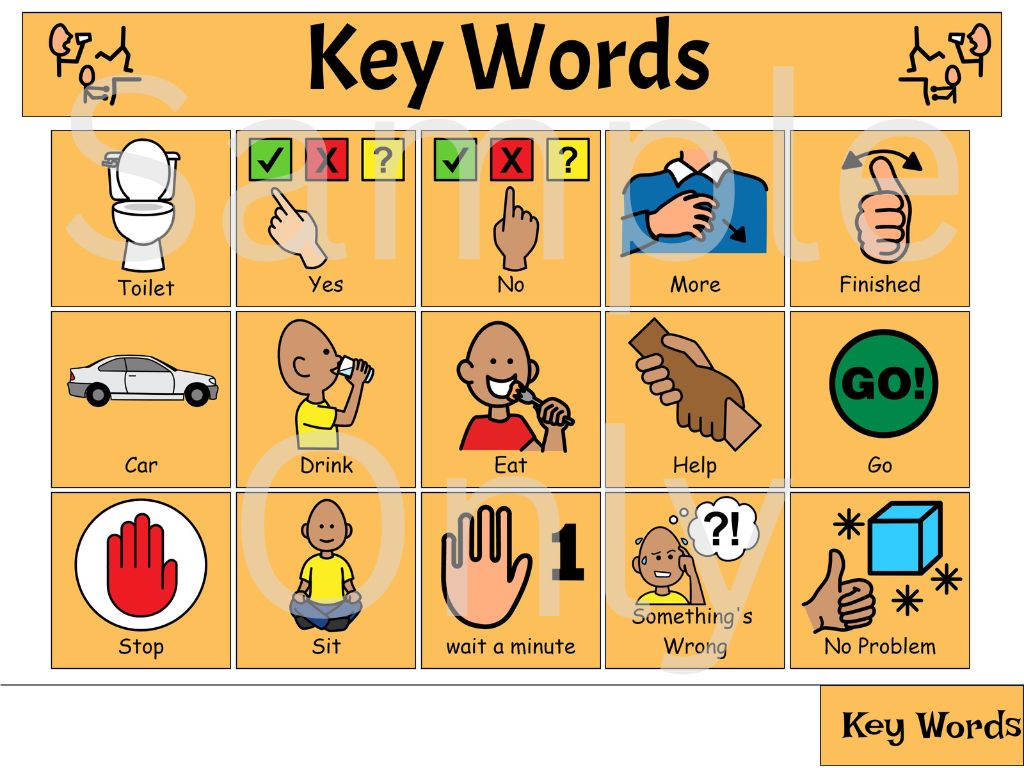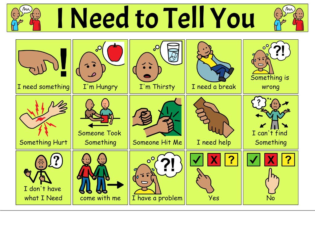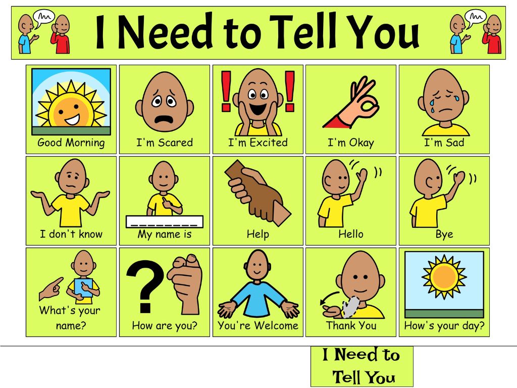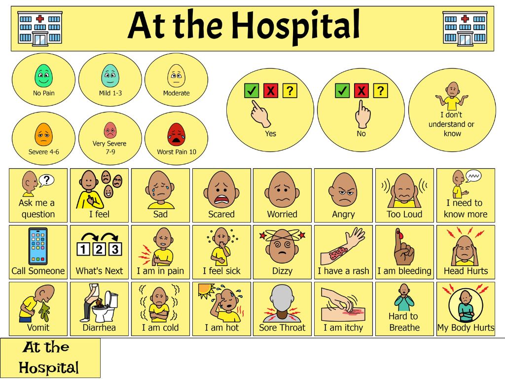 โ Includes tabbed pages for Key Words, I Need to Tell You, Conversation Words, How to Respond, Breakfast, Lunch, Dinner, Drinks, I Need, I Want, Feelings, Places, Body Parts, Something Is Not Right, Hospital/Emergency, Pain Chart, I Want to Play and Sensory Items.
