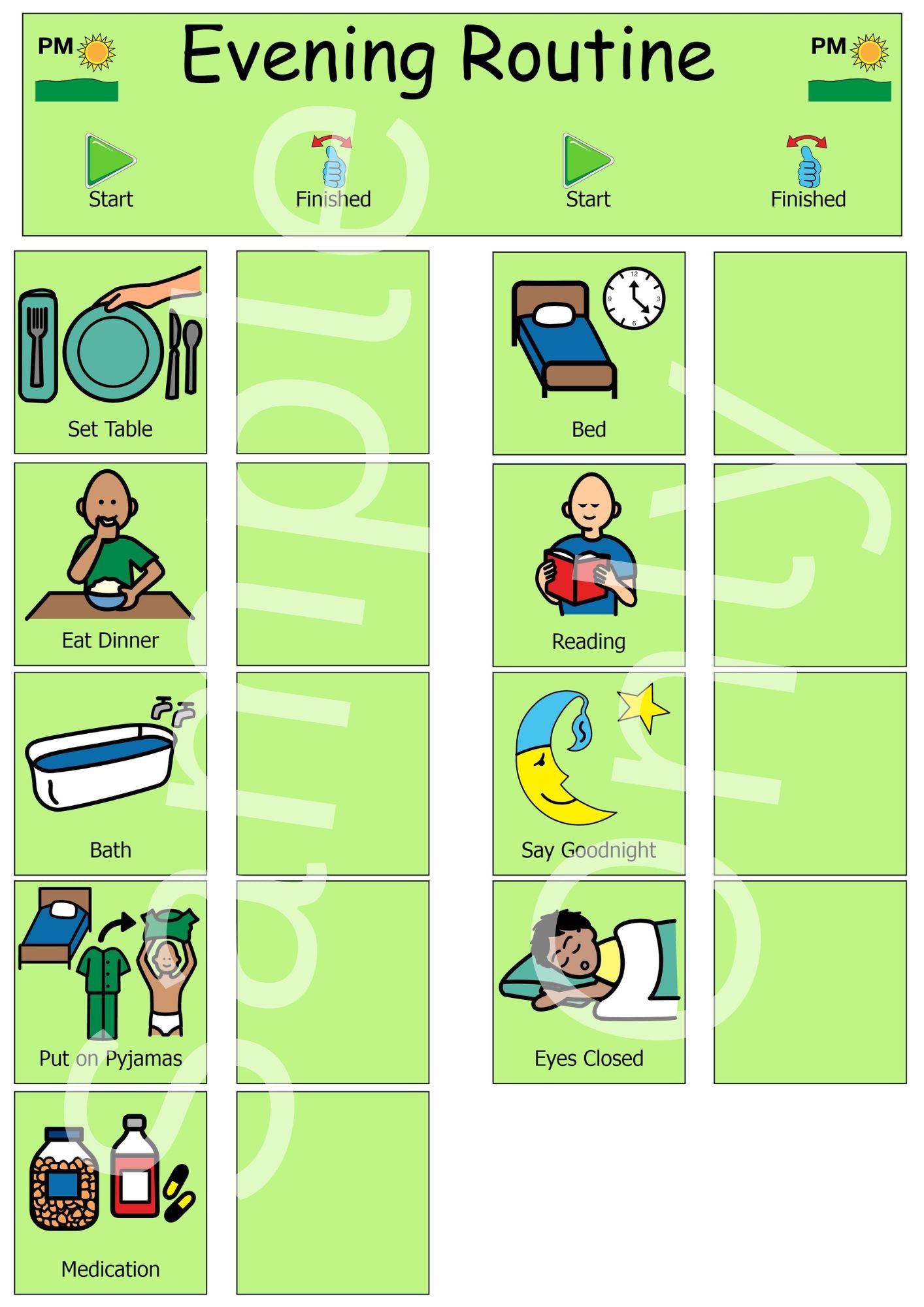 Struggling with evening transitions? Our Start & Finished - Evening Routine visual support is designed to bring calm, clarity and structure to the end of the day. Perfect for neurodiverse individuals including those with autism, ADHD or intellectual disabilities, this ready to use routine helps users complete night time tasks with confidence and independence.